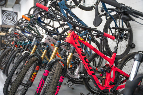 We stock over 100 full suspension bikes from brands including Santa Cruz, Pivot, Norco, Rocky Mountain, Cannondale, BMC and more! Bateman's Trail Shop also features a great selection of certified pre-owned mountain bikes, and a curated selection of MTB parts, accessories, and apparel!